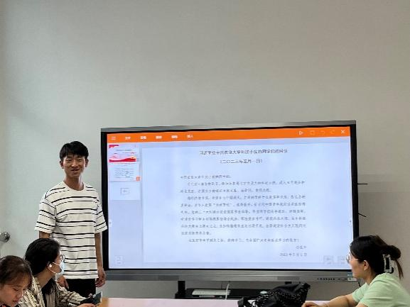 5月26日下午,澳门十大网投正规官网平台果树学研究生第四党支部于南楼218会议室召开五月主题党日活动,共同学习习近平总书记给中国农业大学科技小院同学们的回信精神。党支部书记刘旭主持会议,支部全体党员共同参与学习。