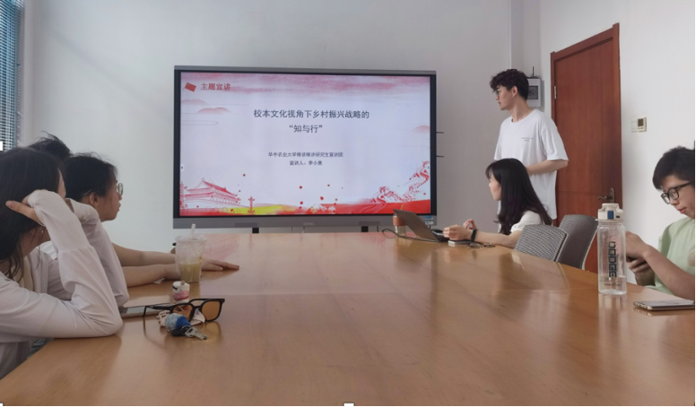 5月19日上午10点,22级园林学硕团支部于园林南楼218会议室开展了主题团日活动。本次活动由班级团支书陈杰同志主持,邀请到了精读精讲研究生宣讲团的宣讲员李小惠为大家进行主题宣讲,支部全体同学参加了本次活动。