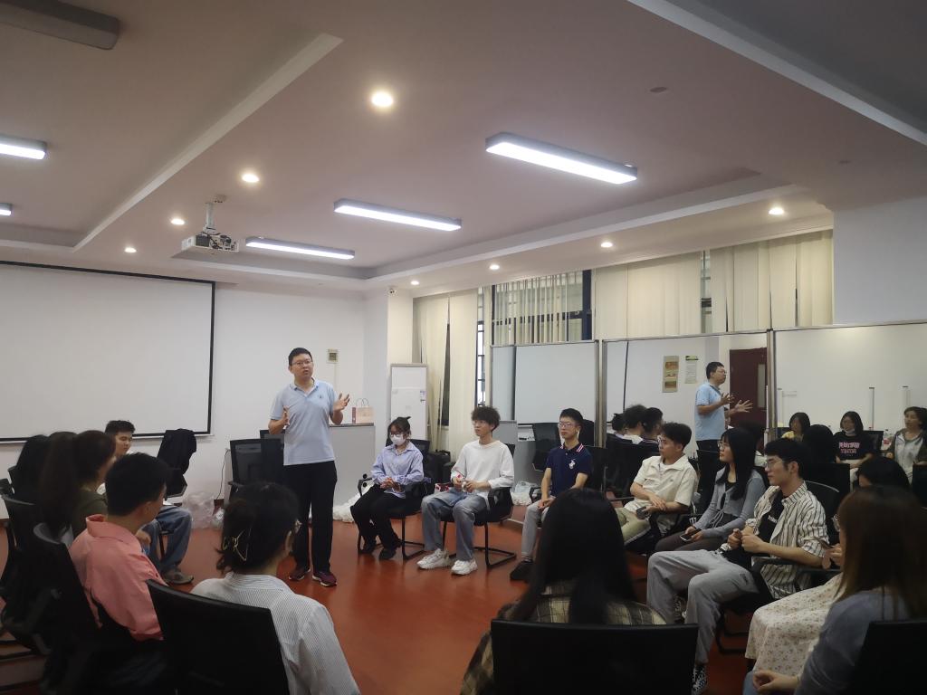随后,研究生辅导员肖晗老师引导同学们针对研究生心理问题进行深入探讨并进行六月份的工作部署。