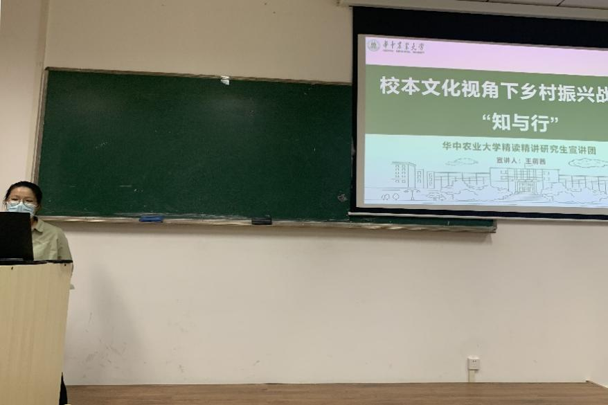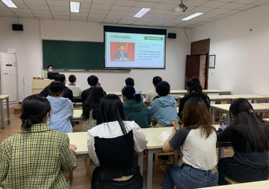 2023年4月14日晚,22级风景园林专硕2班邀请学校研究生“精读精讲”宣讲团成员王萌茜在景园楼309开展了以校本文化视角下乡村振兴战略的“知与行”为主题的宣讲活动。
