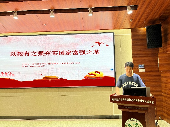 6月27日,澳门十大网投正规官网平台果树学研究生第四党支部在南楼204会议室以“党支部书记讲党课”的形式专题学习“教育强国”和习近平总书记在文化传承发展座谈会上的重要讲话精神,党支部书记刘旭领学。