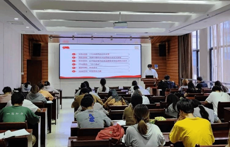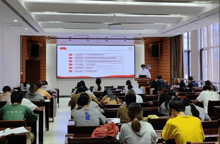 7月6日,澳门十大网投正规官网平台组织研究生、本科生于南楼204会议室开展了“周四理论学习日”学习。学校研究生“精读精讲”宣讲团成员、马克思主义学院孙宇环同学做“学习二十大,奋进新征程”汇报。