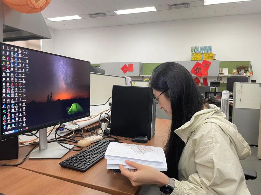图为团队实践成员正在整理场地调研资料(通讯员 王洁摄)