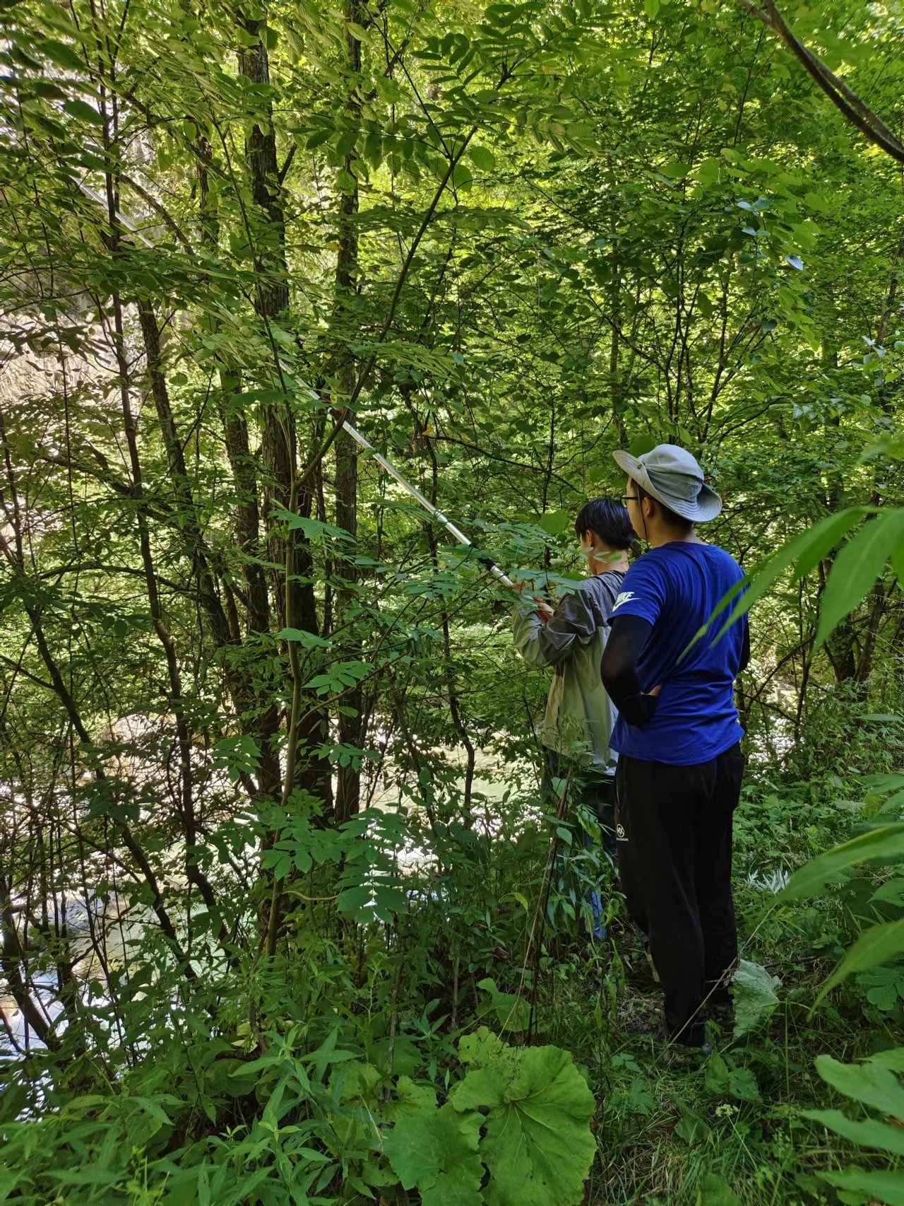 学生在庙台槭群落内采集伴生树种叶片