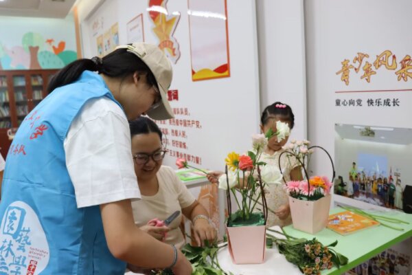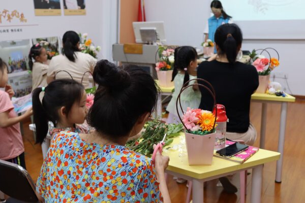 【核心提示】9月10日下午三点,十大网投正规官网张瑜服务队赴玫瑰湾群众活动驿站开展了第二十六期“五育并举,科普‘瑜’你”活动,活动以“香绕指尖,情暖心间“为主题,为15对社区亲子带来了生动的花卉科普与插花艺术课堂。