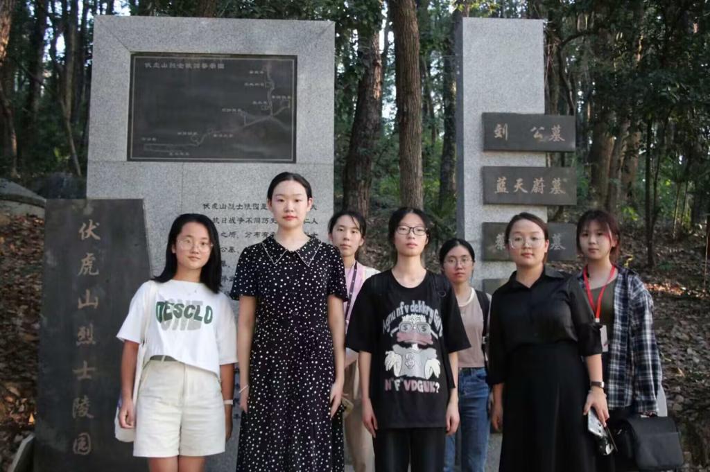 活动过半,党建综合事务部工作人员杨思佳与洪小雨带领相关志愿者前往伏虎山烈士陵园,向烈士献花以表达对革命先烈的缅怀追思。在前往伏虎山烈士陵园的过程中,志愿者们神情严肃,怀着对革命先烈的无比崇敬和怀念之情,一起交流英雄事迹并分享感悟,深切缅怀为革命事业前仆后继、英勇献身的革命烈士。到达伏虎山烈士陵园后,志愿者们站成一排,表情肃穆,认真阅读烈士们的生平介绍之后,向李汉俊烈士、张森烈士、蓝天蔚烈士、刘静庵烈士等烈士献花。