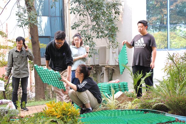 园林2103班指导教师胡惠蓉表示,“花园设计与营建”是新开课,老师们从前是带着学生在基地建花境,“自娱自乐”;这次是在校园里建花园,要接受全校师生的检阅。为了完成好任务,前期请教了景园设计施工的专家杜雁、杨麟及万家乐老师,寻求了工学院李善军副院长及牛成强博士的材料和技术支持,更有园林院多位领导和老师大力支援、支持。4天的课程,师生的投入已半月有余,为了赶工期两晚挑灯夜战,异常辛苦,但看到花园平稳落地、体会到学习的收获巨大,一切都值得。