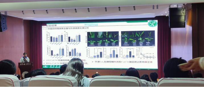 楚乐乐介绍了CiACS4在柑橘株高及成花调控中的机制解析,对矮化柑橘株型,提高柑橘产量具有重要意义。刘胜军介绍了柑橘比较基因组研究及其在从头驯化种的应用,研发了第一款柑橘高通量育种芯片,以第一/第二学生完成人登记两个抗溃疡病新品种。彭玉全介绍了氧化铈纳米材料及嫁接提高黄瓜耐盐性的机制,对设施大棚中黄瓜产量的提高具有重要意义。王思琪介绍了乙烯和水分调控康乃馨花衰老的分子机制,对鲜切花产业保鲜运输提供巨大帮助。朱春琳介绍了泛素连接酶DcEBF调控康乃馨花衰老的分子机制,从基因角度研究康乃馨衰老机制。