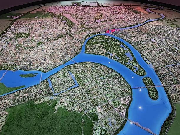 在规划展览馆内,讲解员从历史文化着手描绘了襄阳的荆楚风情,从交通、校园建设、科技发展等方面向大家描写了襄阳的美好前。规划馆采用现代声光电技术打造城市总规沙盘秀,美轮美奂、视觉效果震撼。除了弧幕数字沙盘,展厅一楼的全息影像体验空间,也再现了城市波澜壮阔的历史画卷。