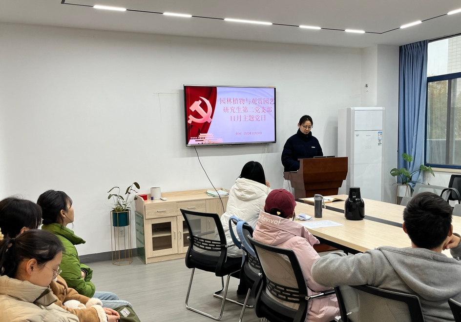 11月30日,园林植物与观赏园艺研究生第二党支部在园林北楼415会议室开展十一月主题党日活动,本次主题党日活动的主要内容为学习习近平总书记在中共中央政治局第九次集体学习时的重要讲话精神、习近平总书记致欧美同学会成立110 周年的贺信精神以及习近平总书记在第三届“一带一路”国际合作高峰论坛开幕式上的主旨演讲。会议由党支部书记刘雅婷主持,宣传委员徐诗羽进行领学。