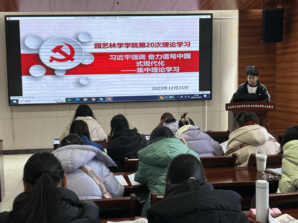 12月21日,澳门十大网投正规官网平台组织研究生、本科生于南楼204会议室开展了“周四理论学习日”学习活动,本周理论学习主题为“奋力谱写中国式现代化”,共有视频学习、自由读报和理论知识竞答三个环节。