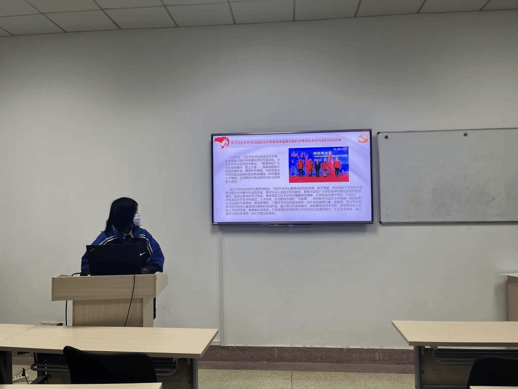 最后孙若天同志领学了习近平总书记给武汉大学参加中国南北极科学考察队师生代表的回信精神,并解读了中国南北极科学考察队不怕吃苦、迎难而上的团队精神,杨坤同志在分享自己的学习心得时谈到,作为一名科研型研究生,我们应学习中国南北极科学考察队砥砺奋斗、勇攀科学高峰的精神,在面对科学难题时勇于探索与尝试,砥砺奋斗,勇担使命。