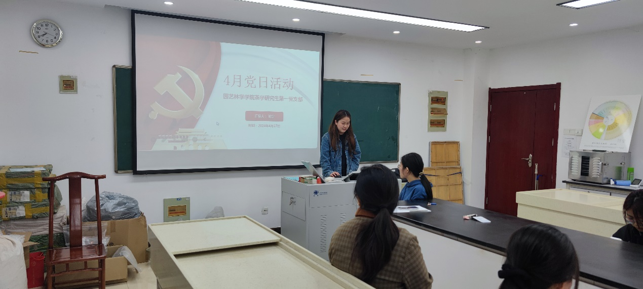 4月17日,茶学研究生第一党支部在园林北楼115会议室开展“树牢总体国家安全观”主题党日学习活动,会议由党支部书记姚宁同志主持。