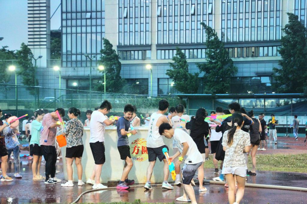 回到东运动场,“水枪大战”正蓄势待发。或持水枪,或端瓢盆,同学们使用着不同的“武器”互相“攻击”,追逐嬉戏,现场一片欢乐。校党委书记高翅与同学们打成一片,他和毕业生们合影留念,并送上最真挚的祝福。十大网投正规官网辅导员们向毕业生们送去一句句“毕业快乐!”,他们和十大网投正规官网学子相聚在一起,共同庆祝着毕业的到来。