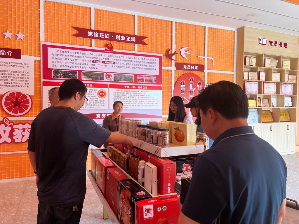 团队成员跟随刘永忠老师来到桂林市灵川县正鸿柑橘产业现代特色农业示范区。公司董事长周燕锋同志是还乡创业青年代表,同时公司吸纳还乡创业青年20余人,为贫困户15人提供岗位,助其脱贫。公司通过“四统一”提供服务即:统一品种苗木、统一生产资料供应,统一标准化生产技术、统一品牌化销售。周燕锋认为发展过程中需要奉行信誉至上,质量第一的原则,以此生产绿色生态高品质的柑橘果品回报社会,刘老师对此表示了高度肯定。