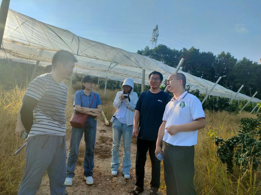 团队成员跟随刘永忠老师来到灵川县定江镇金灵村委董家村,种植大户廖总称其果园为山地果园,主栽品种为沃柑,最大的问题即市场不景气,竞争压力过大。紧接着,实践团又来到灵川县大圩镇下张村委矮江村壹贰壹种养家庭农场,农场老板曾元辉表示主要问题是技术不到位,以至于会遇到各种病害。当地土壤为砂质土,刘永忠老师认为灌水需慢慢下渗,否则会造成根系上浮,易造成日灼。曾元辉表示从刘永忠老师的指导种学到了很多专业知识,会将其应用于实践。
