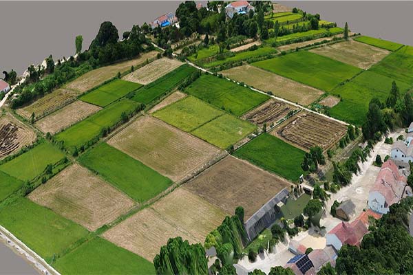 8月20日,实践团队按计划再访蒋家大堰村。实践团队使用专业的航拍无人机,对村内“桥米源”一带(水库以东约6公顷)的土地进行了直线往返和环绕飞行测绘。航拍组将俯拍得到的约500张照片连同路径数据一起发给分析组进行即时处理,得到了测绘范围的高清平面地图与三维地理模型。
