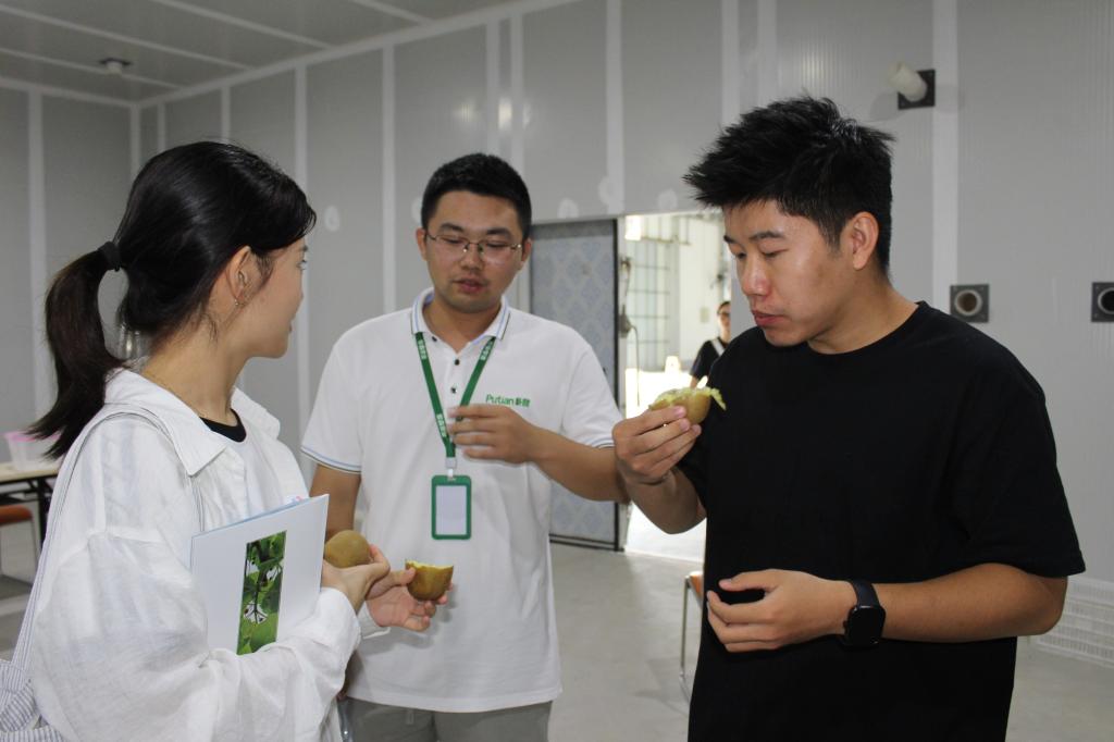 随后,实践团成员们走进了现代化的冷库。这里配备了先进的猕猴桃即食控熟设备,由澳门十大网投正规官网平台猕猴桃采后团队研发而成。这些设备不仅大幅缩短了猕猴桃的控熟时间,还保证了果实的口感与品质,解决了消费者长期以来的“硬果不能吃,软果不耐贮”的困扰。经过控熟处理的猕猴桃达到可食用状态,实践团队成员张靖宗在品尝后,竖起了大拇指,并表示:酸甜可口,风味浓郁,回味悠长。据了解,即食果实在市场上的售价为30元/斤,与未控熟的果实相比,价格提升了三倍,提高了公司和种植户的收益,增强了果农种植猕猴桃的信心。然而,经过问卷调查后,团队成员们发现,尽管猕猴桃即食控熟技术具有较大的优势,但在实际应用中仍需加大宣传与推广力度。