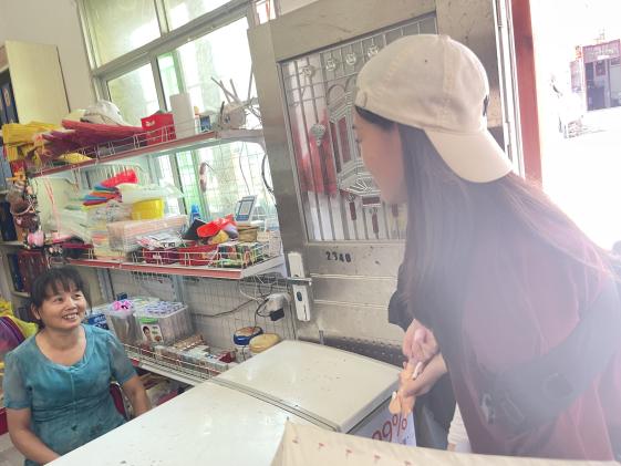 团队成员与当地居民、商家进行交流访谈(通讯员 陈心怡 摄)