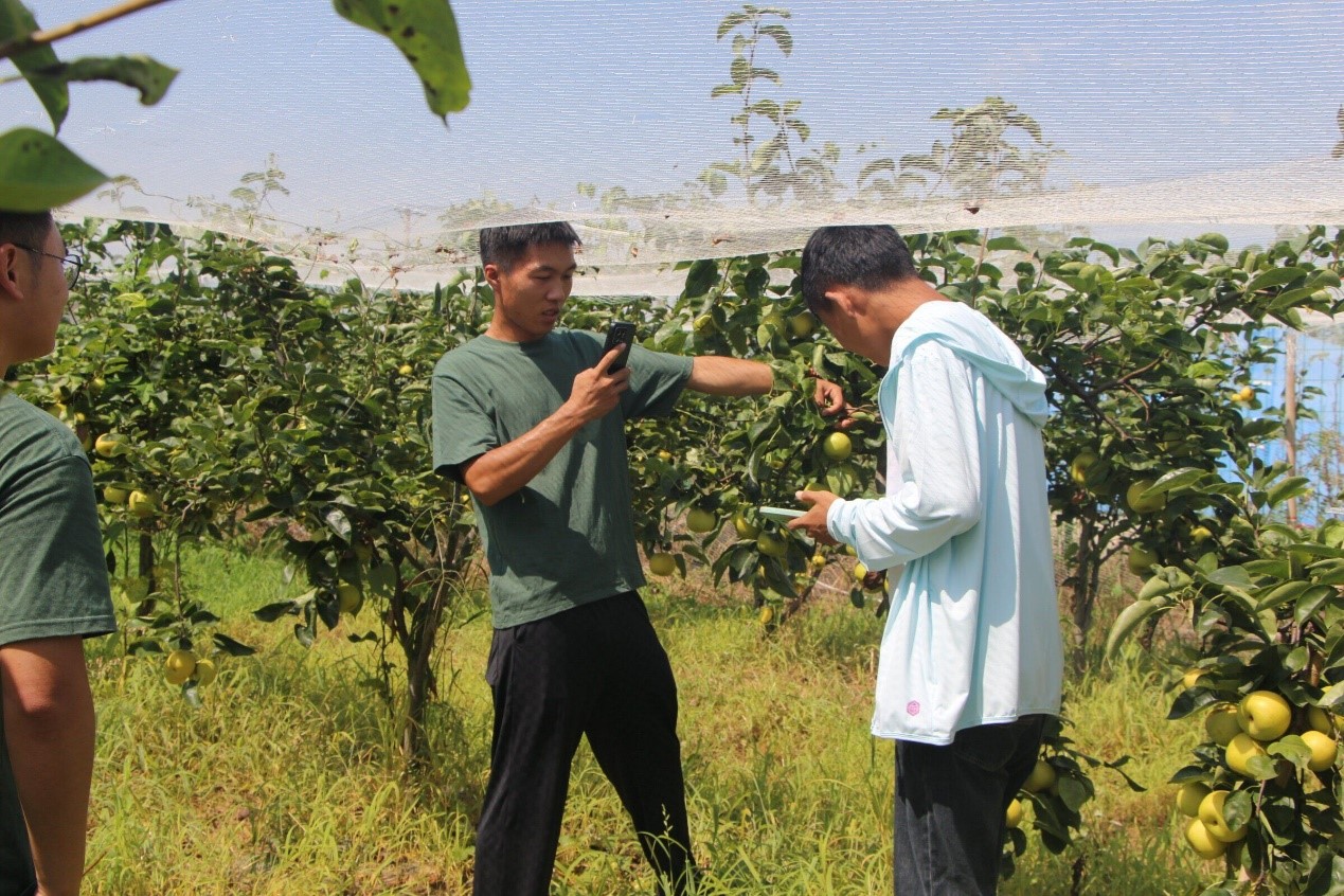 在果园管理人员的带领下以视频直播形式,详细讲解不同果树的种植方法、养护技巧以及生长周期。团队成员意识到,良好的管理是确保果实丰收的关键,特别对有机种植的理念产生了兴趣,了解到如何利用自然的力量减少化学肥料和农药的使用,实现可持续农业。