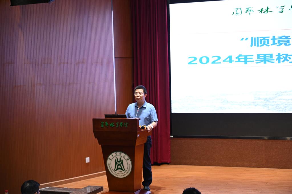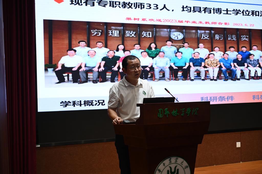 系主任刘军伟副教授从学科发展概况、现有研究条件、科研环境、人才培养计划和社会服务多个方面向各位新生介绍了果树学科的主要情况,为新生们描绘了一幅果树学领域的宏伟蓝图,鼓励新生们要珍惜在学院的学习机会,积极投身于果树学的研究与实践,为果树学的发展贡献自己的力量。