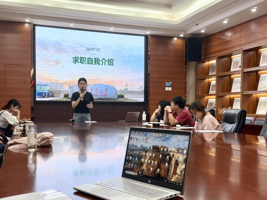 随后,肖晗老师对同学们存在的共性问题进行了集中点评,并给出具体的求职建议。老师指出:“同学们在准备自我介绍时需更加充分,明确并细化自己的求职方向,同时在表达时减少语气词的使用,提高语言流畅性”。
