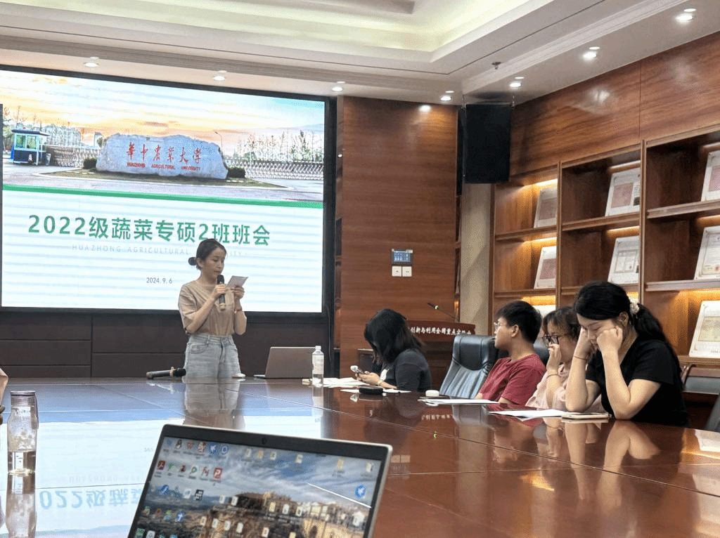 2024年9月6日,澳门十大网投正规官网平台2022级蔬菜专硕2班在园林南楼206教室召开了职业发展与毕业主题班会。班会由班长康静怡主持,团支书刘熠领学,未到场的同学通过腾讯会议线上参会。