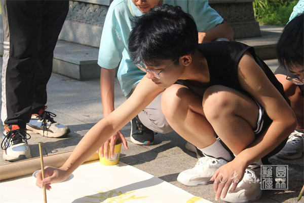 8月30日八点,2024级景园专业的新同学聚集在了景园楼门外张之洞雕像前的一块空地上,进行以画竹为主要内容的“景园心涂”水墨画涂鸦活动。在同学们开始实践前,风景园林系老师洪勇辉、黄滟向同学们讲解了画竹的原理、步骤、技巧,以及画材等选择。新生们跃跃欲试,仔细挑选画材、构思、调色……老师们在一旁观察着同学们的画作,亲自动笔示范,为同学们细致地讲解画竹的技法,并鼓励同学们根据自己的想法为画作增添灵气。色彩在长卷上跳跃、交织,像是走进魔法世界,把平淡无奇的白纸变得灵动飘逸。