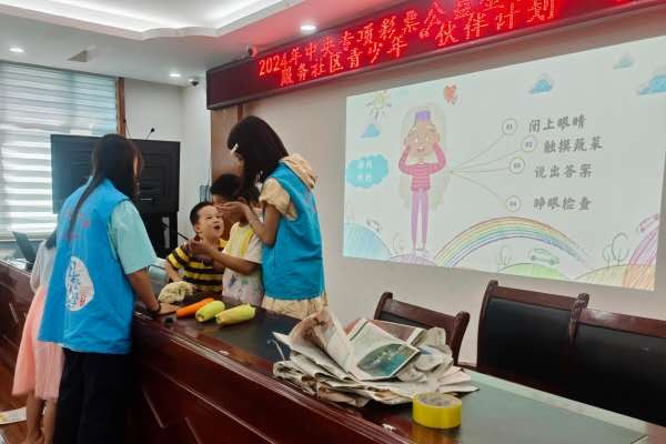 本次科普活动由一张二十四节气图缓缓拉开序幕。伴着生动形象的插图,在茶学2201蒋玉洁的娓娓道来中,小朋友们很快了解到秋分节气的由来及特点。联想近两天的气温变凉需要添衣服,让小朋友们直观感受到秋分带来的变化。在介绍完中国农民丰收节后,一场酣畅淋漓的猜谜语、蒙眼摸蔬菜游戏激起小朋友们极大的兴趣。“红红棒子地里钻,长长绿尾露在外……”“萝卜!”“是红萝卜!”话音未落,一只只小手争先恐后地举起,迅速给出正确答案。由互动环节引出科普内容的下一部分——日常生活中食用蔬菜的分类。从植物角度可以分为根菜类、茎菜类、花菜类、叶菜类、果菜类;而从食用方式分,又可以分为可生食与必须熟食两类。对于这类未曾涉猎的知识,小朋友们起初听得懵懵懂懂。而当志愿者给出一些具体例子后,小朋友们学会了举一反三,积极主动地向志愿者们提出自己的疑问与回答。