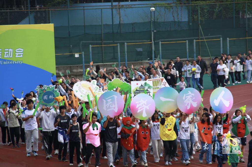 接下来,运动员、裁判员及代表方队陆续入场。十大网投正规官网方阵创意丰富,尽显活力,与学院特色紧密结合。前排同学身着卡通水果马甲,手举“园林一家人”文字牌;后排同学手持绿色和橙色加油棒,举着代表茶学、园艺、林学、景园、设施五个专业的图案牌,伴随音乐向观礼台前进。