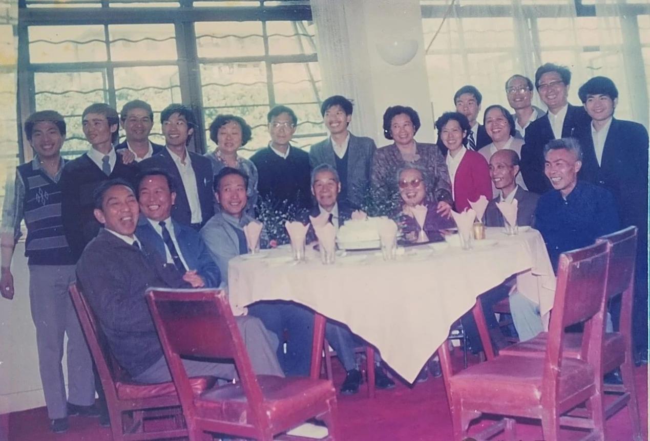 1990年11月,国际柑橘学会在广州召开。时值章文才先生86岁大寿,学生们给章文才先生祝寿时合影。后排右边穿红衣服者为周绂