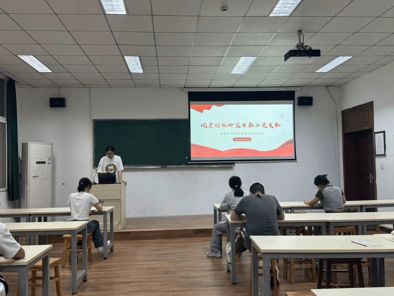 9月24日,风景园林研究生第二党支部在景园楼309教室,开展九月主题党日活动,会议由党支部书记常家容同志主持。