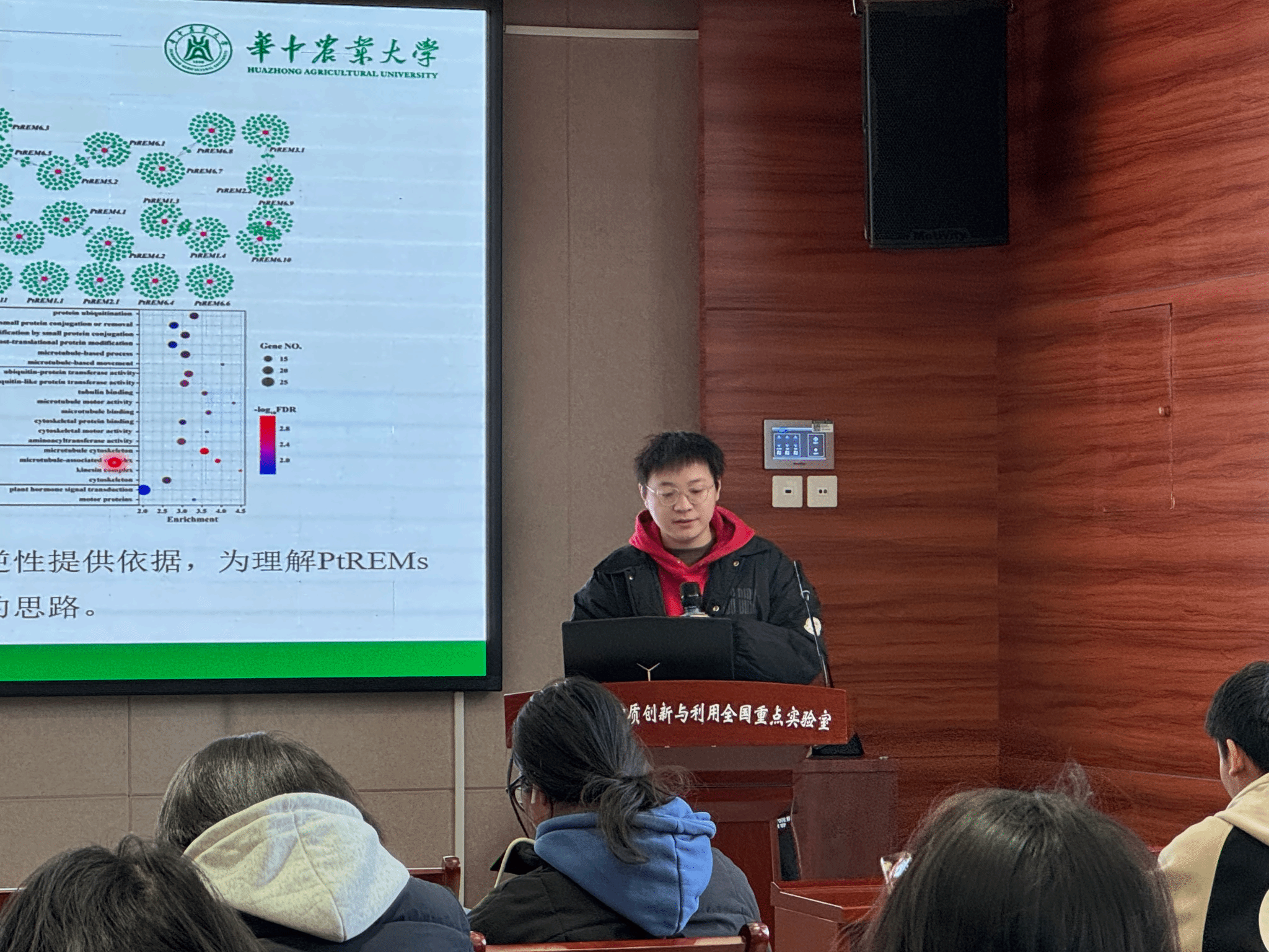 李子晖分享完后,同学们向其进行了提问。有同学问到“师兄大量的科研成果是花费了很长时间吗”,他回答道,自己确实比较早就进组,因为本科在华农的原因,大概在四月份的时候就开始了自己的课题科研项目,所以其实确实花了相较而言比较多的时间在科研上。