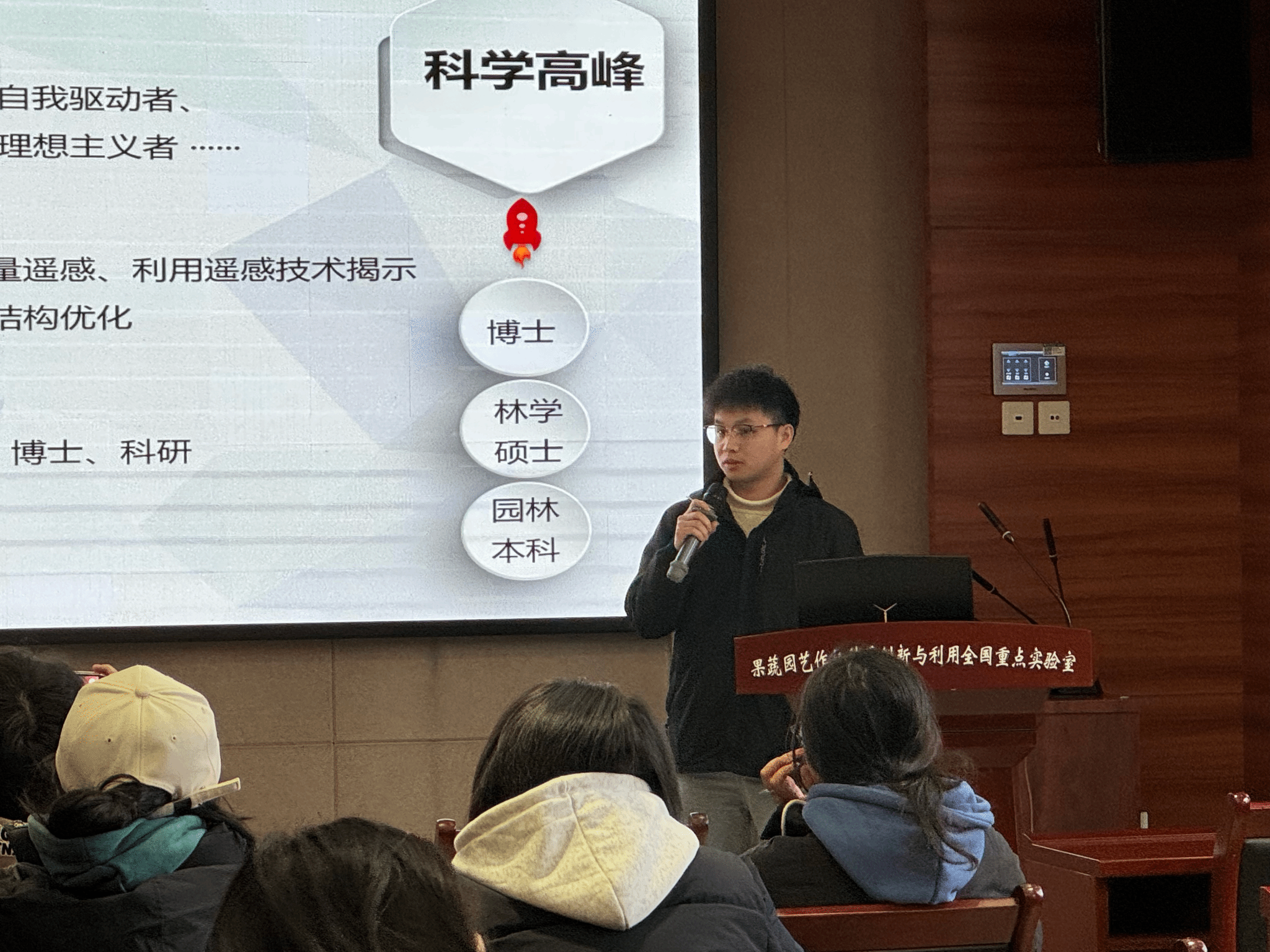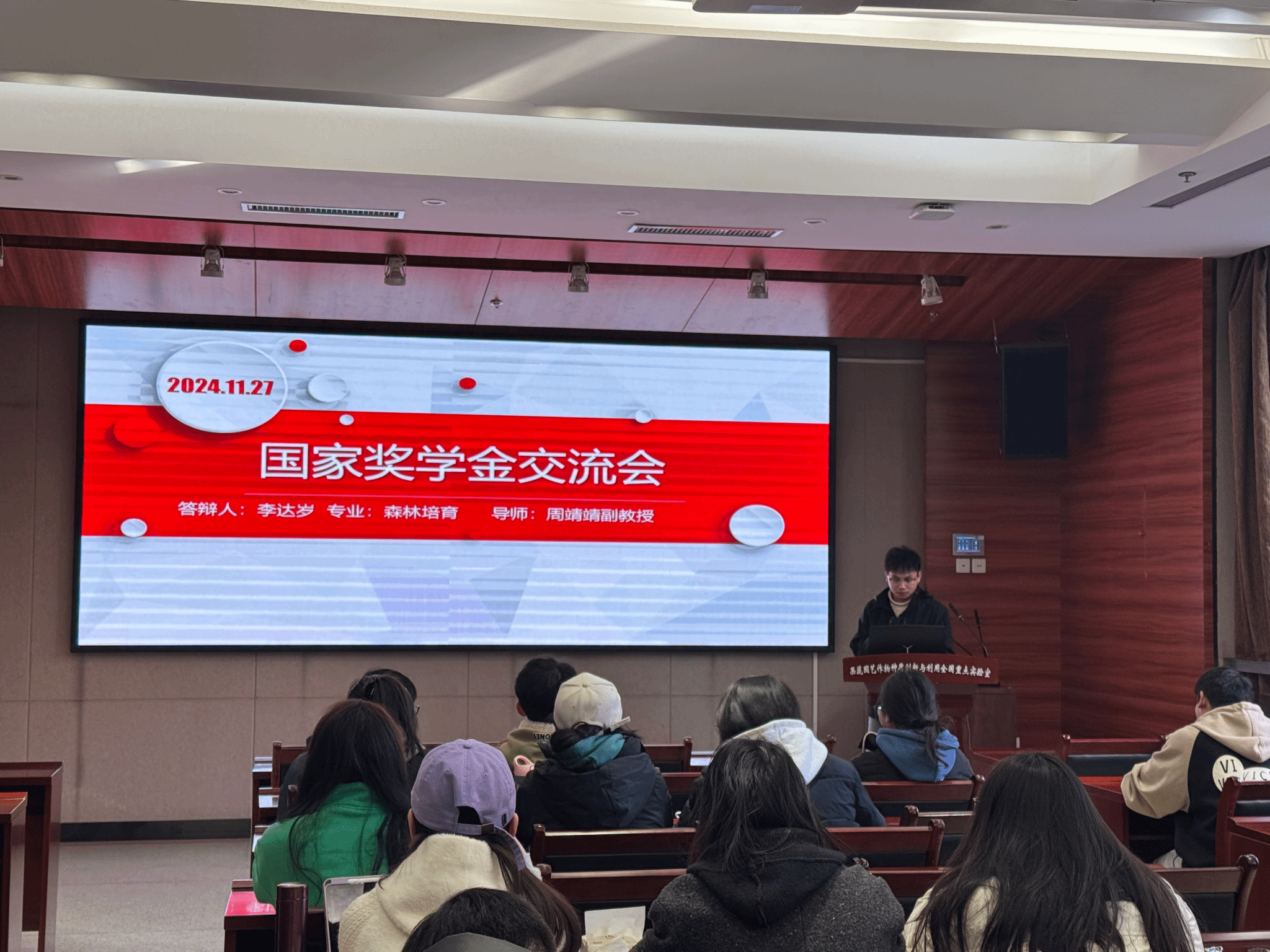 2024年11月27日,澳门十大网投正规官网平台学术社区系列活动之林学系专题:林间学术,绿意长存在园林南楼204报告厅顺利举行。本次活动邀请了林学系国家奖学金获得者李子晖、李达岁向学院研究生分享他们的科研、实践与未来发展规划经验。