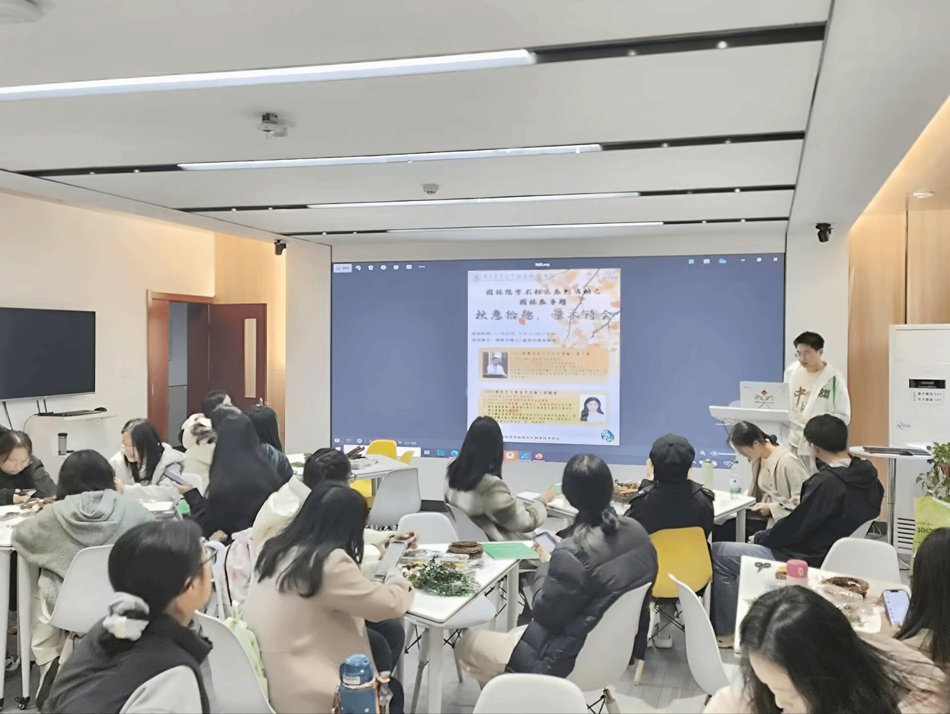 2024年11月29日下午,由澳门十大网投正规官网平台研究生科学技术协会主办的园林系专题学术社区活动“秋意拾趣,草木诗会”在园林北楼221虚拟仿真实验室举行,本次活动邀请了园林系国家奖学金获得者徐璐铖、蔡子敬同学为学院研究生们分享他们的科研、实践与成长经验。