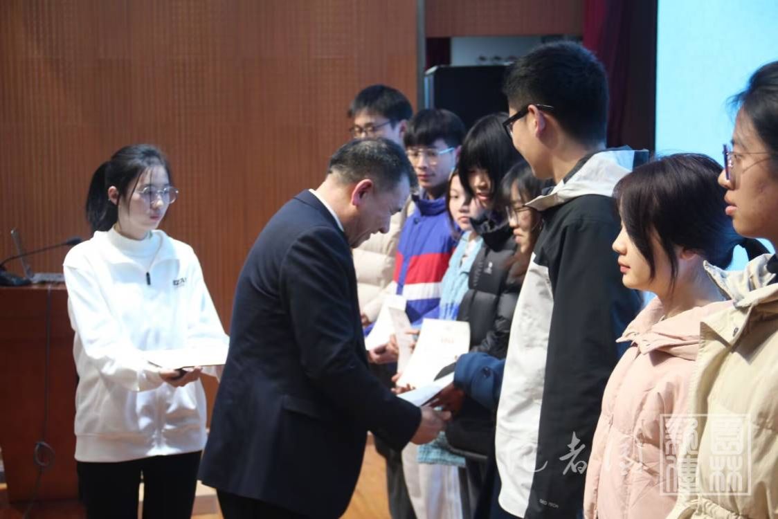 2024年12月26日晚七点,十大网投正规官网2023-2024学年茶学专家、企业奖(助)学金在园林北楼228报告厅举行。湖北省宜昌思源慈善基金会秘书长夏雪、湖北省中兴食品有限公司总经理舒大成、湖北省中兴食品有限公司业务经理罗怀寅、恩施市立早生态农业有限公司武汉区域负责人胡东、恩施市立早生态农业有限公司业务经理吴建、恩施市立早生态农业有限公司业务经理陈贝林及茶学系各老师出席了本次活动。