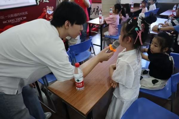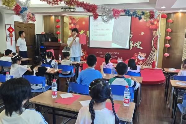 活动伊始,在红色教育环节,能源与动力工程专业2302班徐键作为宣讲人,以红色动画《王二小的故事》为切入点,深入浅出地为孩子们讲解革命历史,并通过问答互动引导孩子们理解革命精神与红色文化。随后,他向孩子们介绍了位于同兴社区活动室附近的张自忠路的命名由来,张自忠将军波澜壮阔的革命经历与英勇无畏的革命精神触发孩子们的思考。在这一环节的最后,徐键提出了“作为新时代少年,如何传承革命精神”的问题。“要勇敢不怕困难!”“要努力为祖国作贡献!”孩子们稚气的回答深深地打动了徐键和在场的其他实践团成员。他们表示,只要能让孩子们领悟革命精神,传承红色基因,为活动所做的一切努力都值得。