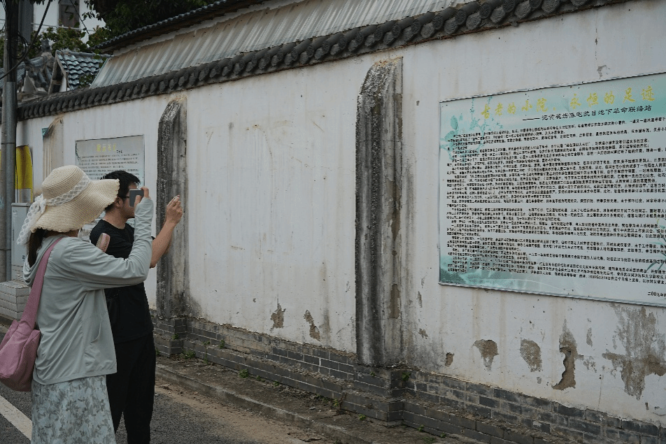 在古镇的西南角,有一栋至今保存完好的院落,虽饱经沧桑,但仍错落有致。谁曾想,这一座没有引起太多注意的院落,曾经是抗日时期的地下革命联络站。实践团队成员们在参观联络站旧址伫立许久,认真地感受那一段波澜壮阔的红色历史和革命情怀。
