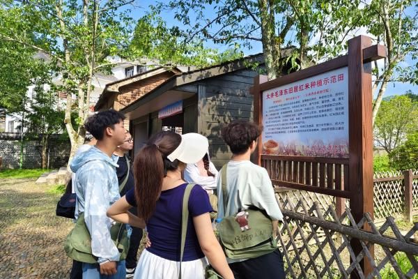 实践团成员怀着崇敬之心,踏入这片充满历史厚重感的土地,参观着旧居。在读书石前,往昔岁月似被唤醒,毛泽东同志即便面临风吹雨打,仍专注安宁的翻书声,仿若从石上那镌刻着峥嵘过往的痕迹间翻涌而出。而在大井毛泽东旧居的红米种植示范田间,“指导单位:澳门十大网投正规官网平台” 的字样格外醒目,那一抹亮色,恰似红色基因跨越时空,正代代传承,熠熠生辉 。