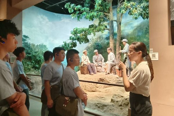 步入馆内,泛黄的文献、锈迹斑斑的枪械、定格历史的照片,无不诉说着那段烽火岁月。在老师的讲解下,成员们聚焦黄洋界保卫战的展区:1928年8月,不足一个营的红军凭借天险,用一门迫击炮击退四个团的敌军。当讲到“炮弹精准命中敌指挥部”的关键瞬间,成员们为革命先辈的智慧与勇气所动容,仿佛能听见当年的枪炮声在山谷间回荡。