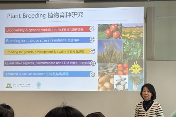 随后,瓦赫宁根大学植物科学研究学院教授Yutong Qiu介绍植物科学研究院情况,并讲解综合害虫管理方法,提及研究院在植物育种、生物防治等领域的进展,深度分析了研究院与企业合作开发新型害虫识别模型的案例。园林2403班的谢瑞恺表示:“生物防治和农药使用最小化的管理思路,打破了我们对‘治虫必用农药’的传统认知,为国内生态农业发展提供了新方向,也让我们明白科研与产业结合能更好推动农业技术落地。”