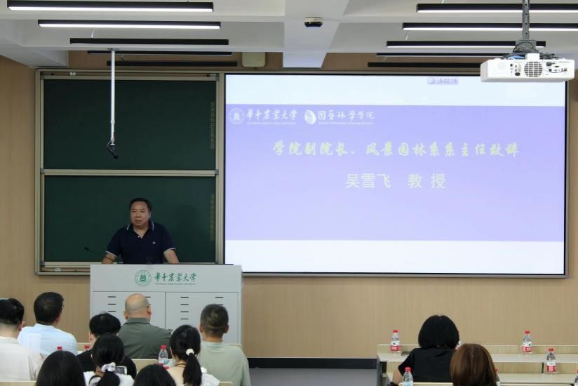 会议伊始,学院副院长、风景园林系主任吴雪飞教授代表风景园林系全体教师向2025级研究生新生表示热烈欢迎。他强调,风景园林专业学生应正确把握当前行业“危”与“机”,跨界整合、适应市场,于大浪淘沙中抓住机遇;在完成学业同时,须密切关注行业新动向与新目标,以平静而坚定的态度撰写论文,坚守学术初心,在复杂环境中保持方向、坚定信念,最终成长为推动行业的中坚力量。随后,张斌、刘文平、吴昌广、杜雁、李静波、邢小艺等老师依次介绍各团队研究方向,涵盖城市生态健康、区域生态修复、山水文化传承、乡村景观管护、城市更新设计及逆境植物应用等领域,展示团队课题成果与学生培养模式。在读博士李思韬分享科研体验,倡导平衡学术与生活。学院党委副书记林辉鼓励学生既要有思想之光、勇于提问,又要有行动之力、主动对接导师并落实课题,实现从理念到实践的跨越。