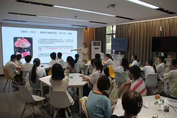在同学们对行业前景有了清晰认知后,郑日如老师将话题自然过渡到“芳香疗愈及精油在其中发挥的作用”。她从芳香疗愈的历史渊源入手,详细讲解了芳香疗愈的原理及精油在调节情绪、舒缓压力等方面的重要作用。为让同学们有更直观的感受,郑老师现场带来了橙花、茉莉、马郁兰、雪松等多种常见精油,邀请同学们逐一轻嗅体验。“橙花的味道好清新,闻着特别放松!”“雪松的香气很沉稳,让人感觉很安心。”同学们一边体验,一边分享着自己的感受,现场沉浸在阵阵宜人的芳香中。