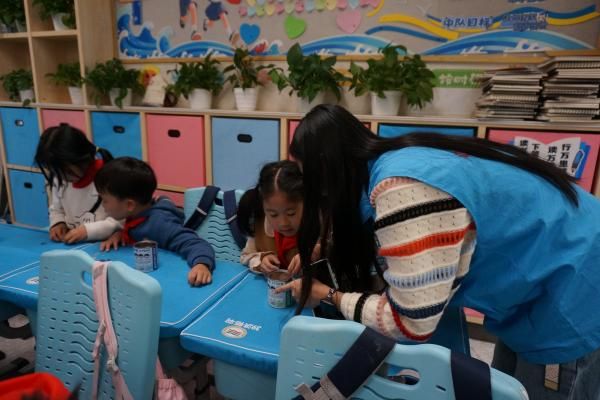 最让孩子们期待的实践环节随之而来——罐中播绿。在志愿者与家长的协助下,孩子们领到了专属盲盒种子罐头,开始有条不紊地倒土、放种、浇水,亲手播下绿色希望。操作过程中,孩子们难掩兴奋,主动向志愿者分享自己过往的种植经历,言语间满是对生命成长的好奇与期待。
