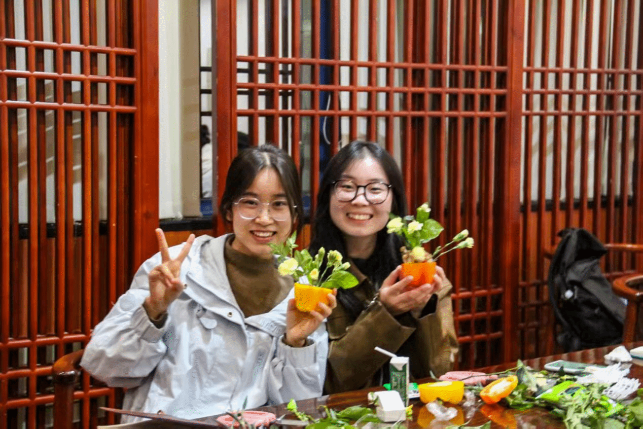 (同学进行现场插花)