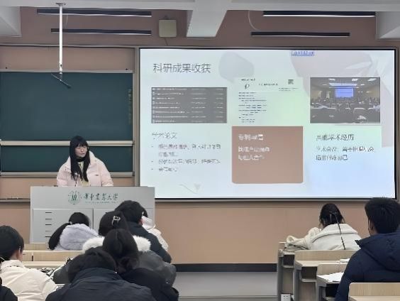 2023级园林植物学硕士生张欣茹结合自身获奖经历,围绕“如何讲好科研故事”与“保持热爱”展开分享。她系统介绍了从文献积累、技术规划到成果梳理的科研叙事方法,并强调尽早撰写论文与保持实验记录的重要性。此外,她分享了通过正念练习、生活观察与阶段奖励,在科研中保持动力与身心平衡的体会,鼓励同学们在专注学术的同时,热爱生活、持续成长。
