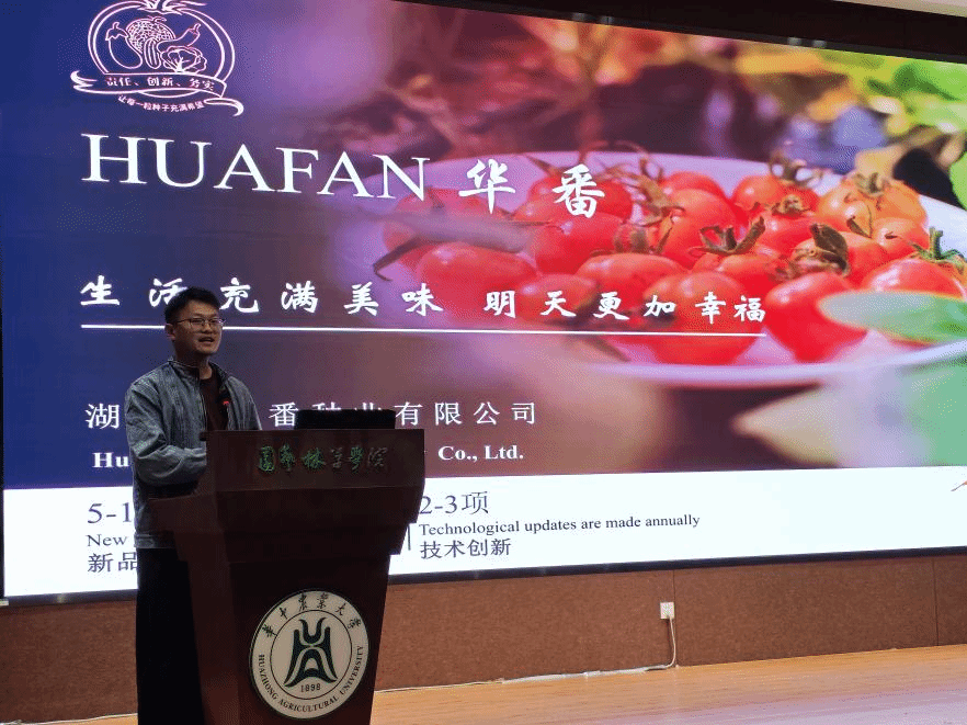 冉佳俊则以华番种业为例,结合自身参与创新创业赛事的实践经验,从项目起步到落地发展进行了系统分享。他介绍,公司联合澳门十大网投正规官网平台及果蔬园艺全国重点实验室,组建以叶志彪教授为首的育种团队,掌握番茄基因芯片、单倍体育种等核心技术,拥有番茄种质20800份、辣椒400余份等丰富资源。在湖北恩施、武汉等地建立生产基地,新品种“倍味美”等广受市场认可,2025年核心营收达百万元,线上线下渠道协同发展。团队荣获全国种业“揭榜挂帅”特等奖等荣誉。他鼓励同学们立足专业,依托学校平台,借助团队力量,将科研成果转化为产业应用,在双创实践中实现价值。