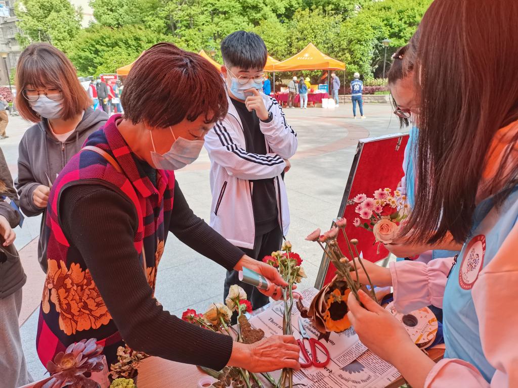 4月17日上午,澳门十大网投正规官网平台张瑜服务队受邀参加洪山社会组织嘉年华·公益市集,开展了“植物养护知识科普”和“手捧花制作”志愿活动。该活动面向华农西社区的居民,旨在科普植物养护知识,提高动手能力。