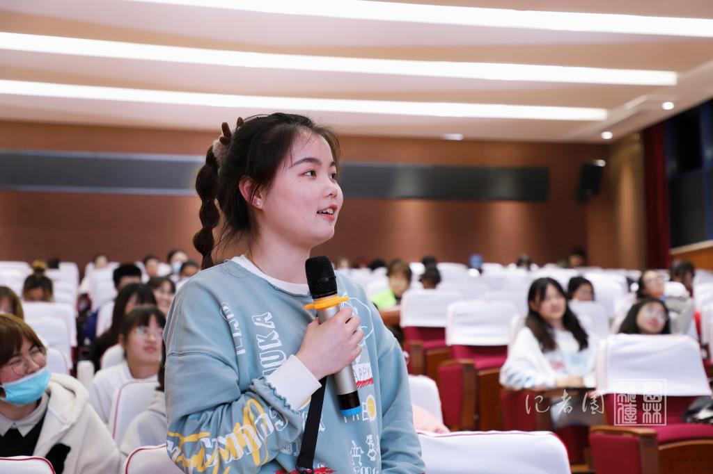 茶学1801班王淑腾现任校团委学生团务中心主任。她在交流中提到,学生工作最主要的是沟通,并结合自己在“4:30有约”这一活动的亲身经历说明学生工作要结合同学实际的兴趣和需要所在,不忘初心,心怀热爱。