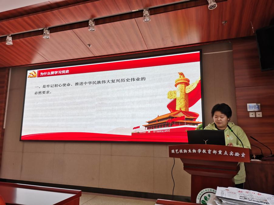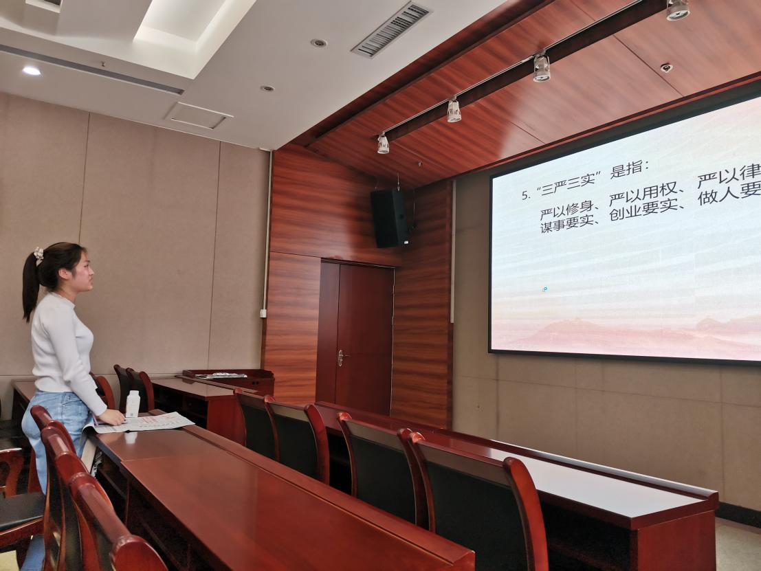 活动伊始由党员同志袁清韵主讲本次党史学习。她演讲的主题为“五四精神,传承有我”。袁清韵从为什么学习党史谈起,结合《中国共产党简史》向同学阐明了学习党史的意义。随后,她结合相关视频,生动形象地让同学们了解到五四运动时期青年人的精神面貌,带领同学们反思了我们作为新时代的青年应该怎么做。袁清韵说道,自古英雄出少年,作为新时代栋梁的我们,应该以身许国,苦练本领,努力奋斗,修身立德,实干担当,奏响新时代的青春之歌!